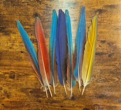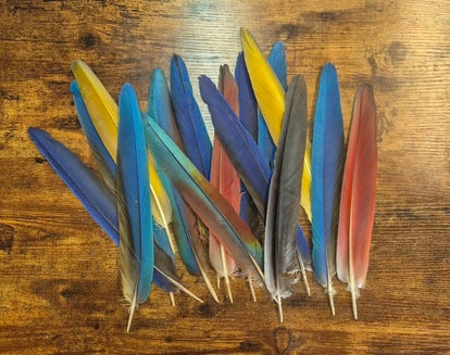 Wenn Du ein Wunsch hast, z.B. vom Gelbbrust Ara oder doch lieber vom Hyazinth Ara, dann gib mir bitte Bescheid bei der Bestellung, ansonsten fliegt die Feder zu Dir, welche mir das Universum in die Hand legt.