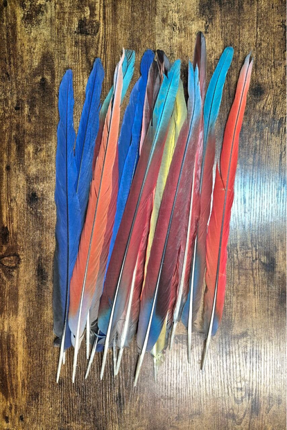 Erhalte 1 Stk. Exklusive Ara Feder mit ca 20cm Länge.
