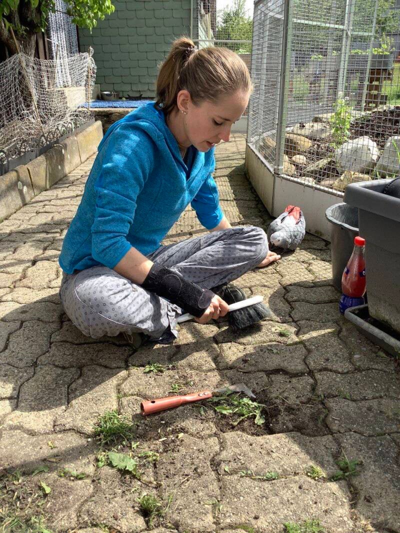 Einer der Ara's kletterte jedoch auf meinen Kopf,